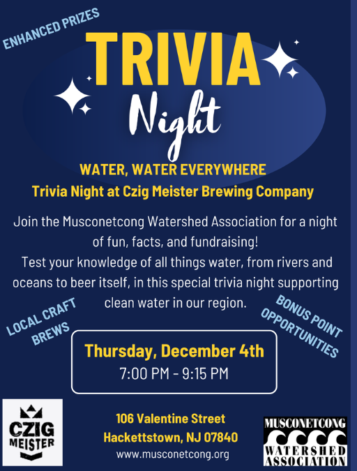 The Musconetcong Watershed Association is excited to announce a fun and informative Theme Trivia Night & Fundraiser at Czig Meister Brewing in Hackettstown!
