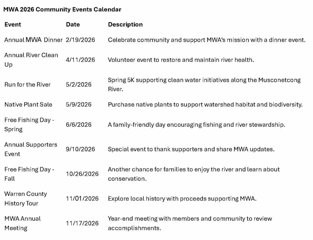 “Joining the Musconetcong Watershed Association is a privilege,” said Eileen. “The Musconetcong River is a vital part of New Jersey’s natural heritage. I’m honored to help lead the next chapter of MWA’s work—protecting this watershed through science, collaboration, and community engagement.”