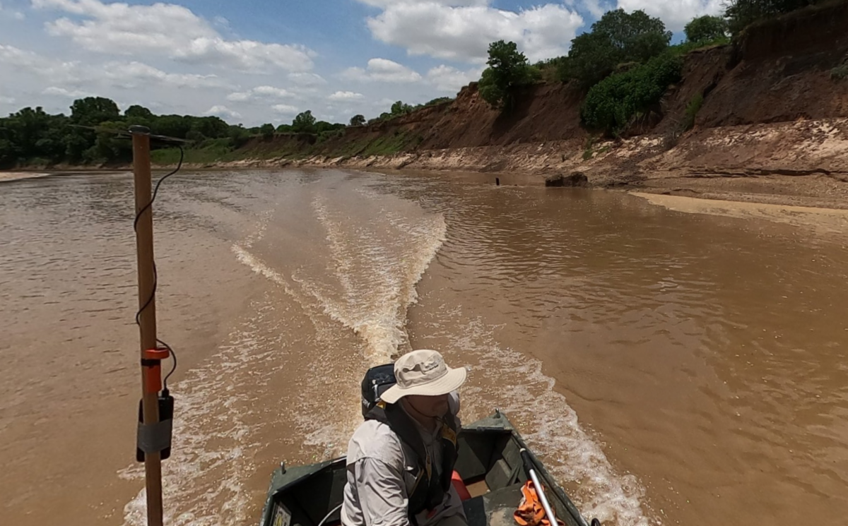 Aqua Strategies staff cruising down the Brazos River to evaluate potential study sites.