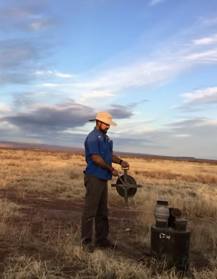 Phillip Valladolid taking a water level measurement in Culberson County | |