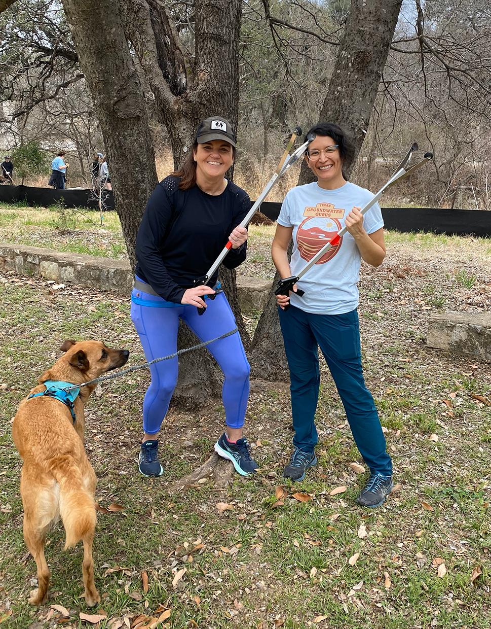 Heather Dodson and Amy De Luna volunteering to clean up Pease Park in Austin | |