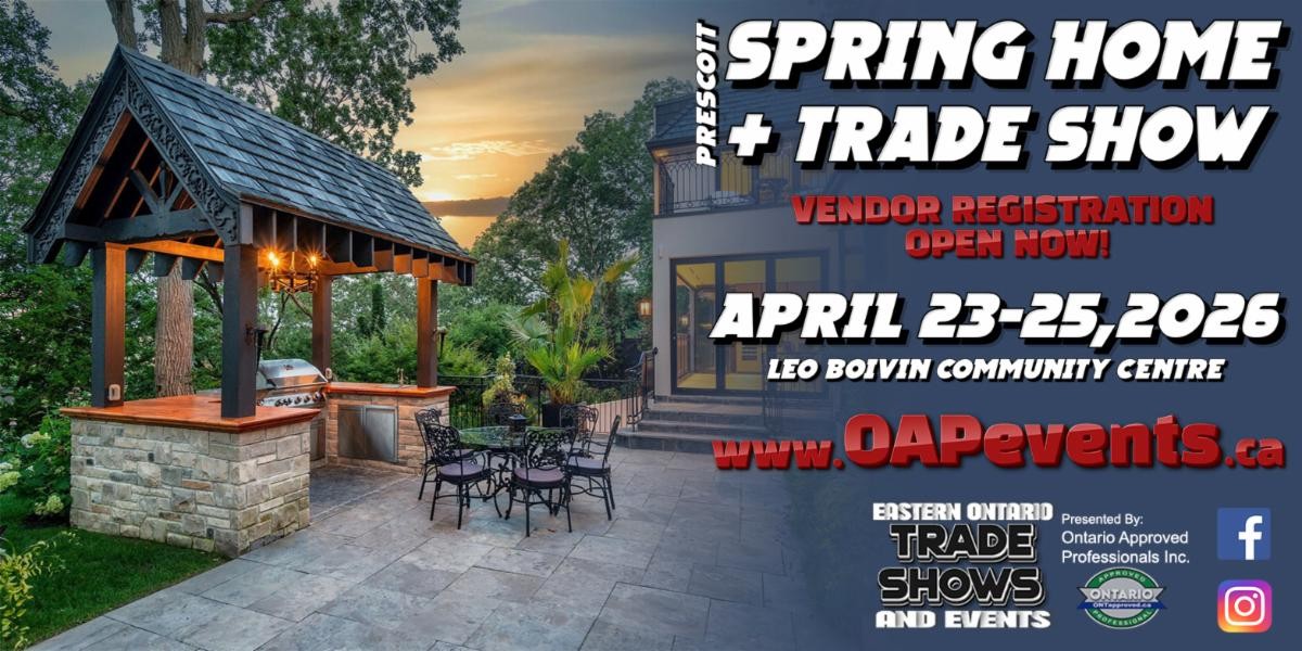 Ontario Approved Professionals (OAP) has opened vendor registration for the 2026 Prescott Spring Home & Trade Show, taking place April 23–25 at the Leo Boivin Community Centre. The show continues to serve as a key regional marketplace for home-related businesses, trades, retailers, and service providers.