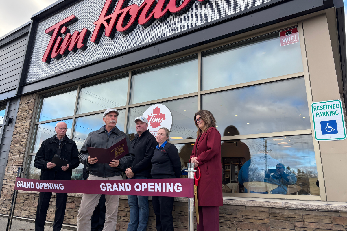 | | Deputy Mayor McConnell & Members of Council welcome Mane Three Nineteen, a new waterfront hair salon, to the Downtown Prescott RiverWalk District, and new owners Tanya Bond and Russ Peters to the Edward Street Tim Hortons. | | |
