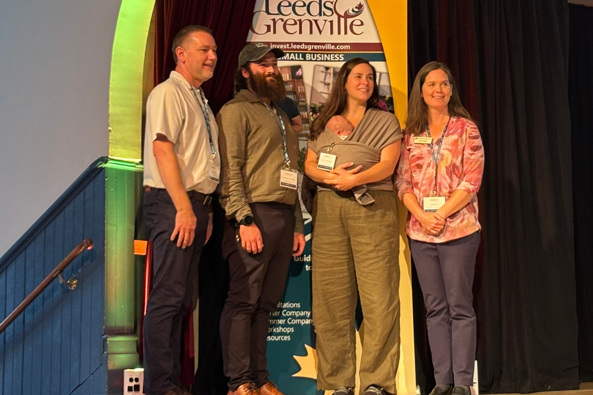 The evening also celebrated the achievements of local entrepreneurs, including two standout successes from Prescott. JD Van Allen, of Eden’s Refuge (pictured inset with Darren Gallacher & Katie Nolan, CF Grenville, and fellow graduate Bre Martel-Audet of Edwardsburgh Cardinal's Nature's Hum Clothing), graduated from the Starter Company Plus program, highlighting the strength of Prescott’s entrepreneurial ecosystem. Allin & Associates received the Inclusive Employer Award, recognizing the firm’s commitment to accessibility, diversity, and equity in the workplace.