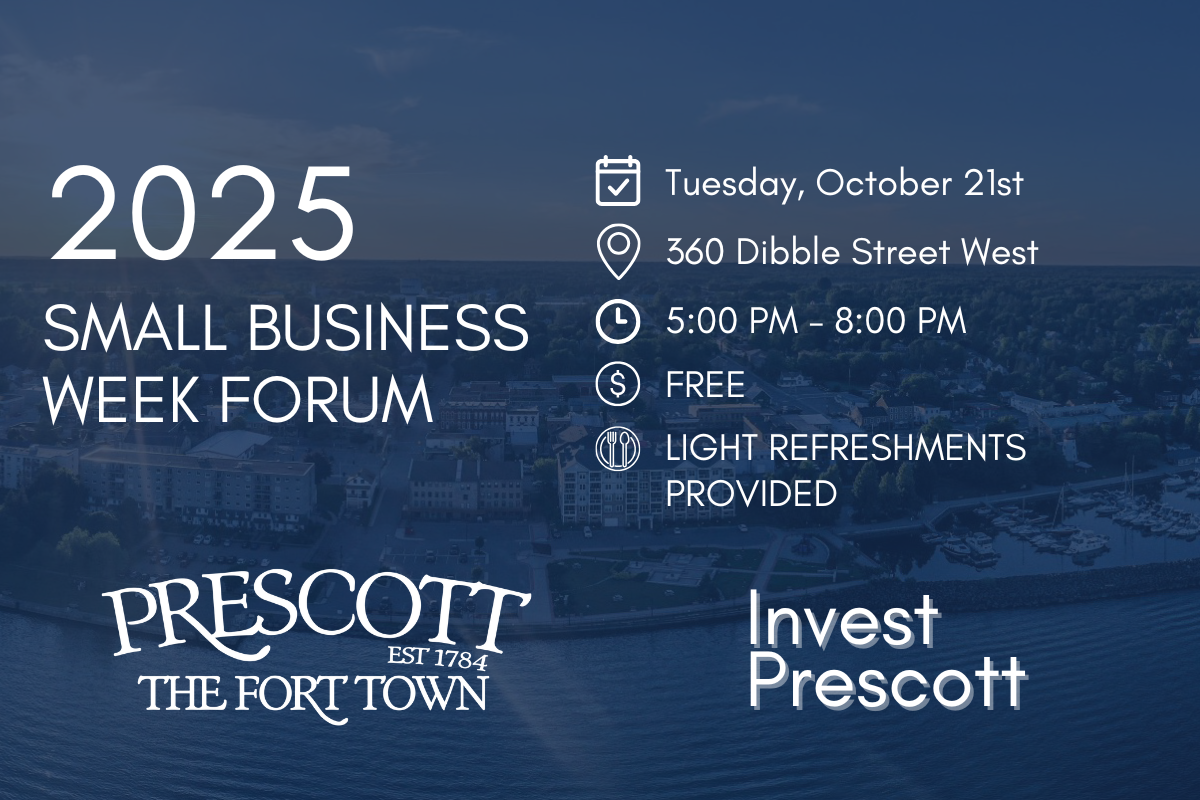 Prescott’s Small Business Week activities are part of a national celebration of entrepreneurship led by the Business Development Bank of Canada. From October 19–25, BDC Small Business Week will shine a spotlight on the theme The economic revolution is here – get your business ready, recognizing how technology, trade, and demographic shifts are transforming the economy.