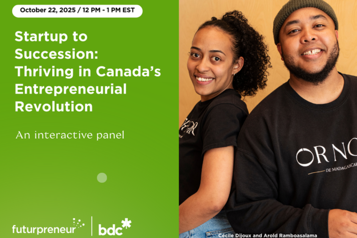 BDC and Futurpreneur present Startup to Succession: Thriving in Canada’s Entrepreneurial Revolution on Wednesday, October 22, from 12:00 to 1:00 p.m.