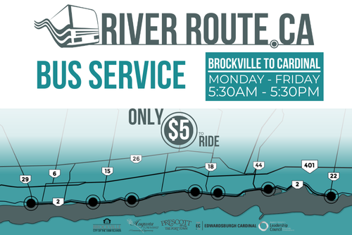 The River Route public transit service has expanded! New stops in Maitland, Prescott, Johnstown, Cardinal, and surrounding areas make it even easier for riders to get where they need to go. Whether commuting, attending appointments, or running errands, passengers can enjoy more connections with the same reliable schedule.
