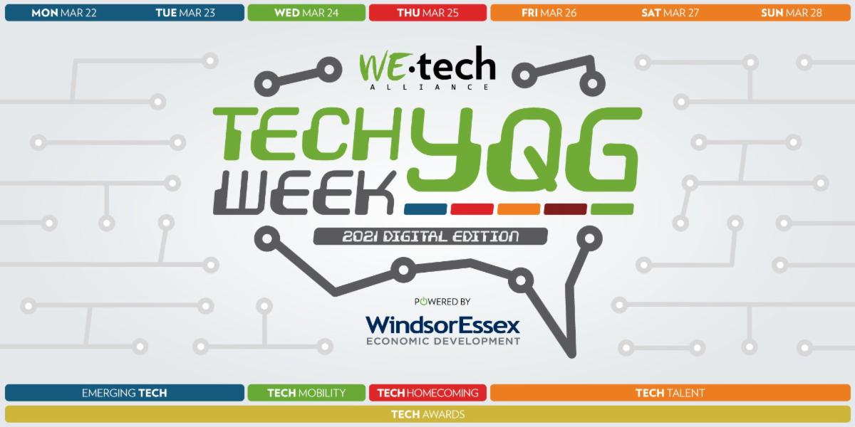 Tech Week YQG is set to return digitally this year, March 22nd -28th, offering a collaborative series of events spearheaded by WEtech Alliance and the WindsorEssex Economic Development Corporation (WE EDC). This week brings together tech leaders, founders, talent, researchers, investors, and the broader community.