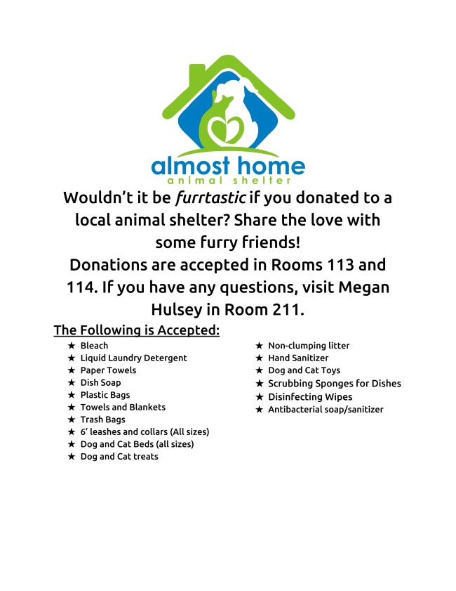 is looking for student volunteers to help us out during classes on Mondays. See flyer on bulletin board outside of the Dining Hall for more details or stop by Rm 114 and see Ms. Clinton.