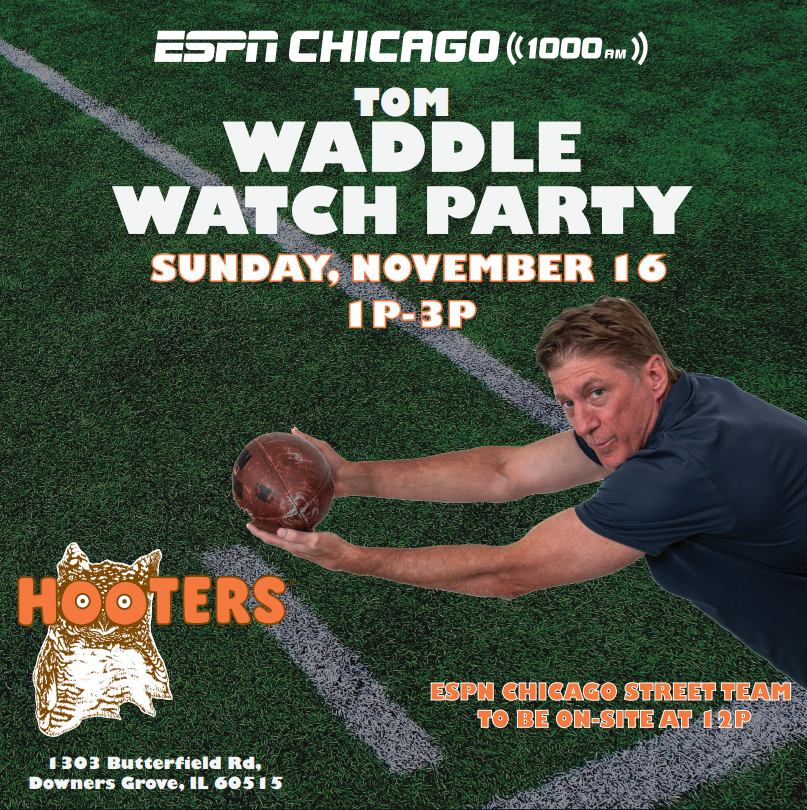Are you ready to wing it with Waddle?! Join ESPN Host and former Chicago Bear Wide Receiver Tom Waddle at Hooters Downers Grove on Sunday, November 16th.