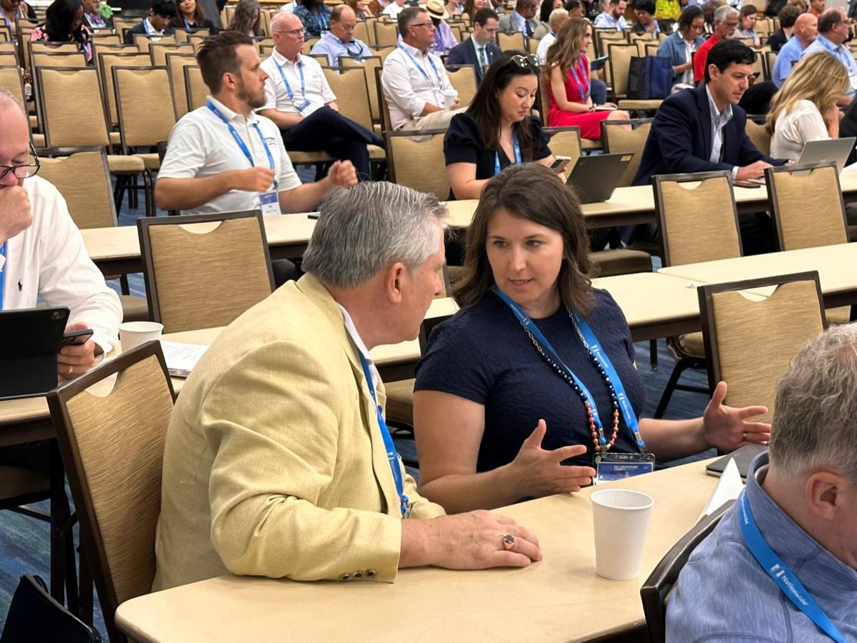 Jefferson County Circuit Court Clerk David Nicholson and Grant County Clerk Tabatha Clemons converse during the 2024 NACo Annual Conference. | |