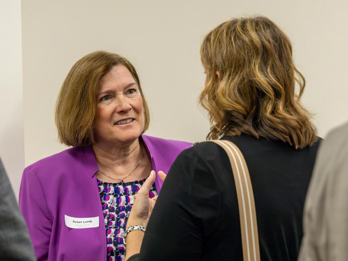 Susan Lamb (Fayette County) talks with Heather Stout, Executive Director of KYTC's Office of Information Technology. | |