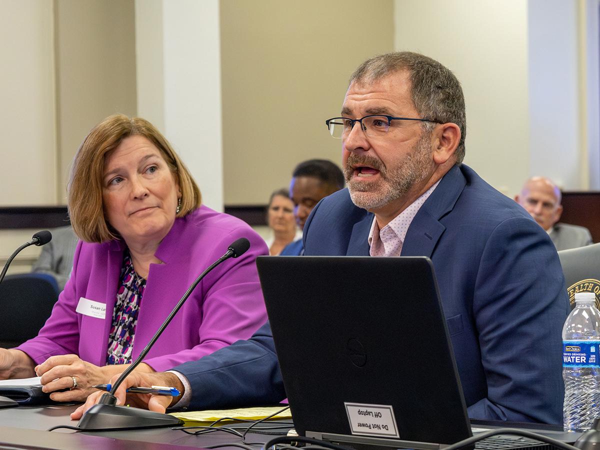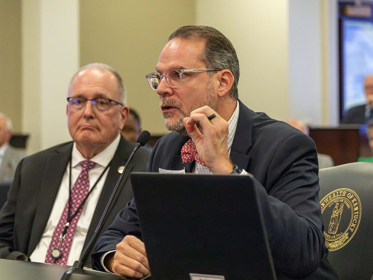 County Clerk Brian Smith (Hardin County) testifies earlier this week at the Interim Joint Committee on Transportation meeting. | |