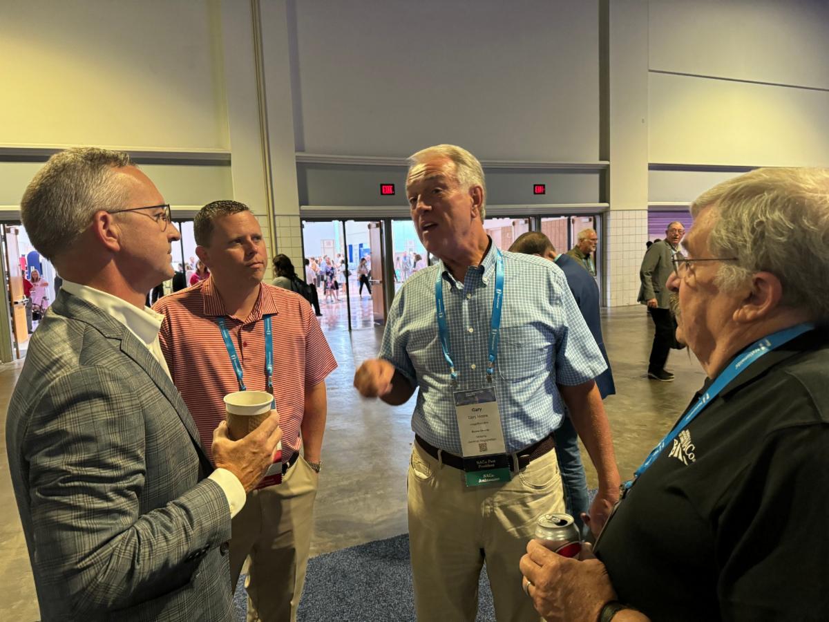 Boone County Judge/Executive Gary Moore speaks with KACo Executive Director Jim Henderson, Harlan County Judge/Executive Dan Mosley and McCracken County Commissioner Bill Bartleman. | |