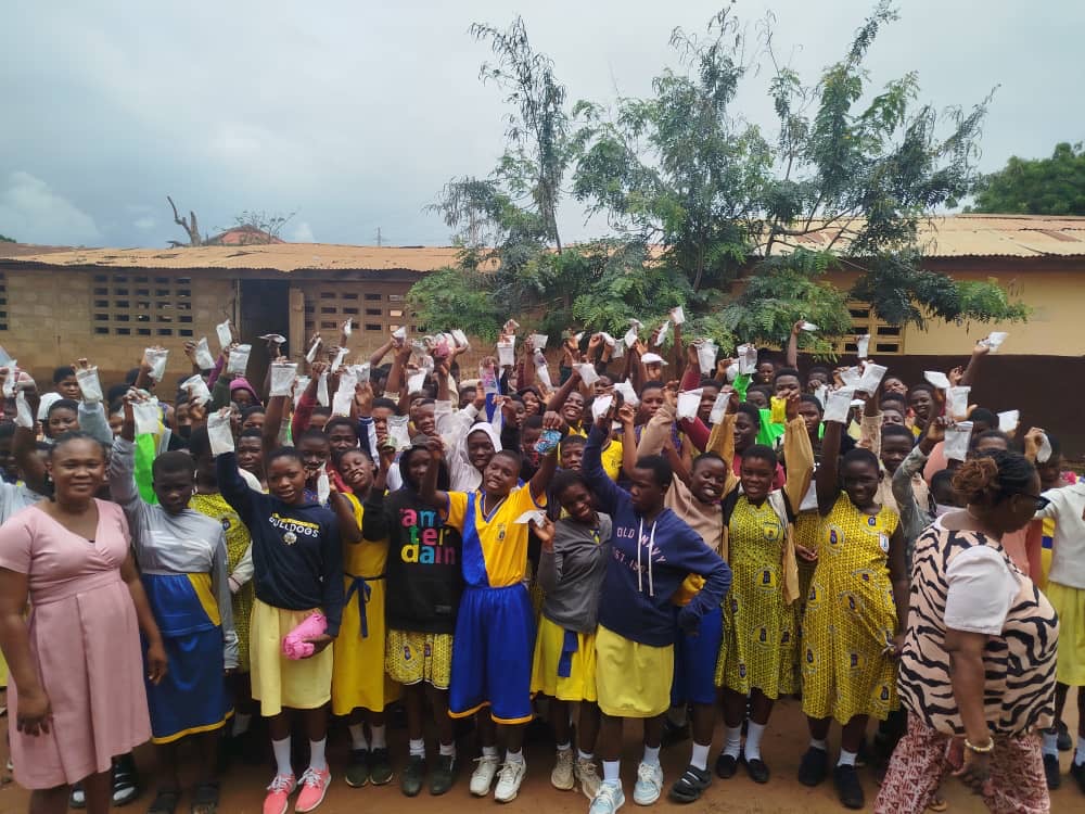 Video above is a student recipient of a menstrual cup at GED sharing what she learned and below is a section of school girls displaying their menstrual cups