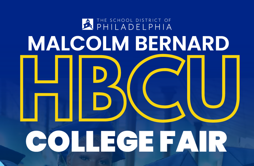 | | WEDS 11/19: Malcolm Bernard HBCU College Fair | | The School District of Philadelphia’s Office of Postsecondary Readiness will be hosting their 27th Annual Malcolm Bernard Historically Black College and Universities Fair on Wednesday, November 19 from 3:30pm - 7:00pm at Martin Luther King High School located at 6100 Stenton Avenue. | | | |