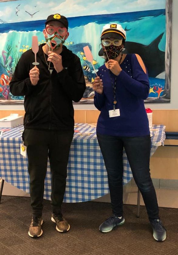 There were Team Building activities during the day that included a “What’s in Your Phone” game and a “Cruise/Ocean” Door Decorating Contest. The staff voted and the top three choices won a prize! A Photo “Booth” area was also set up with Cruise photo props for staff to take pictures together. At the end of the day, the winners of the games and door prizes gathered to spin the Prize Wheel!