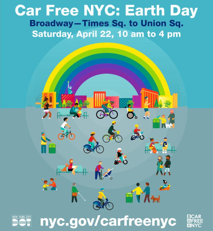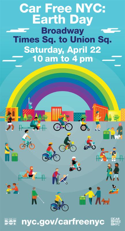 Please share the poster prepared by DOT and check out our social media guide here, complete with graphics, newsletter language and suggested tweets! Please also feel free to check out the website. I hope you all find an activity to participate in throughout the city on our 2nd #CarFreeNYC on Earth Day, Saturday, April 22, 2017!