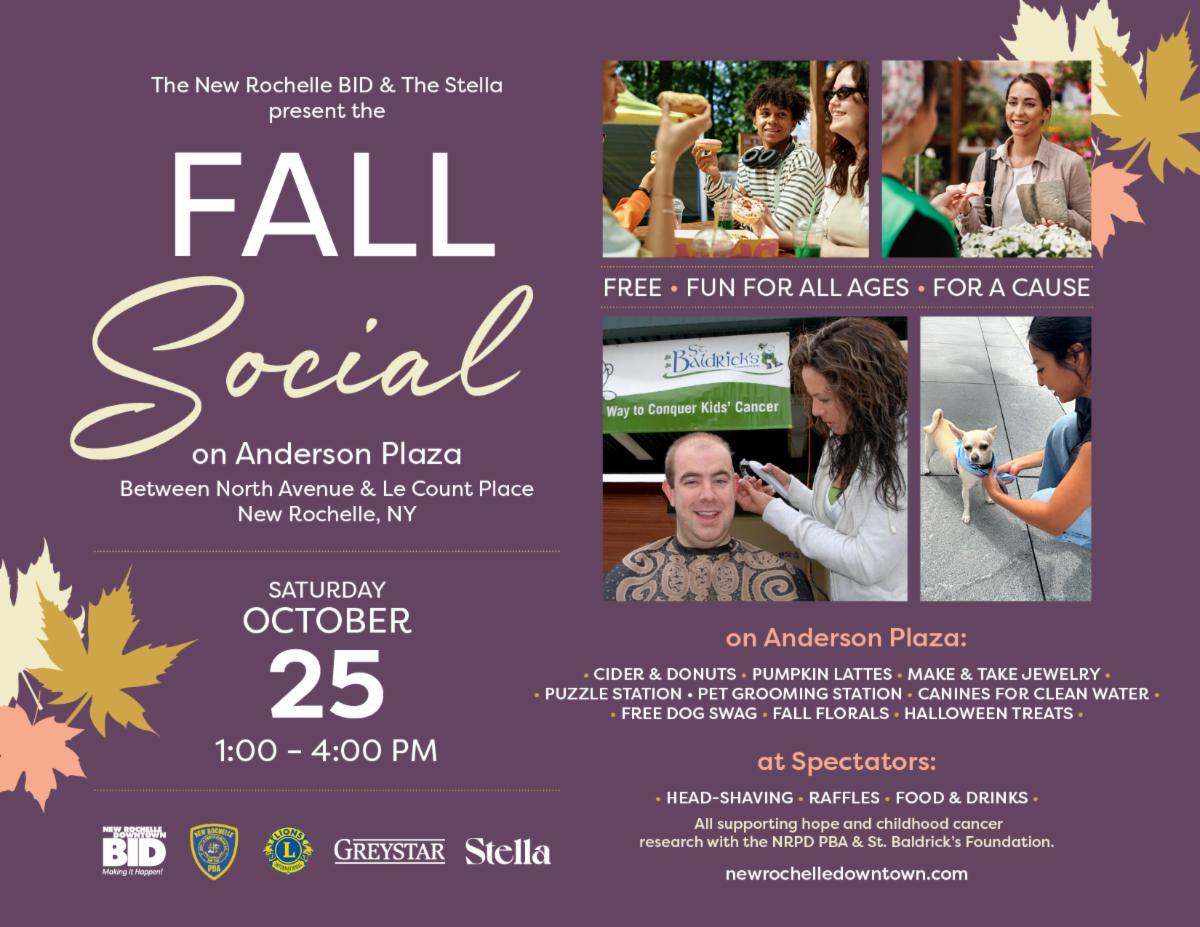 You're Invited to the Fall Social. Enjoy the day - Saturday, October 25, 1:00 - 4:00 pm- in Downtown New Rochelle for fall fun and good vibes!