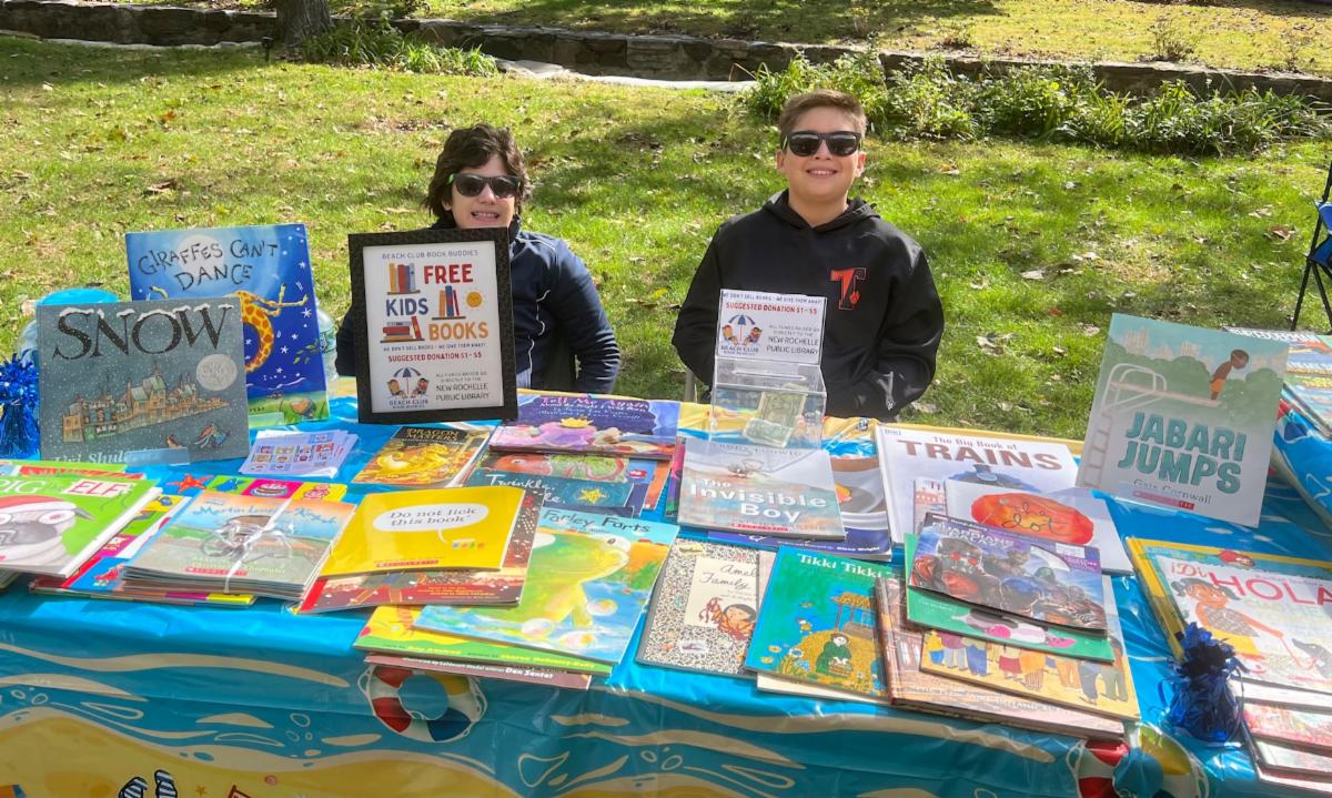 Pictured: Amy Tietz, President of the Friends of the New Rochelle Public Library, and Beach Club Book Buddy co-founder, Max B.