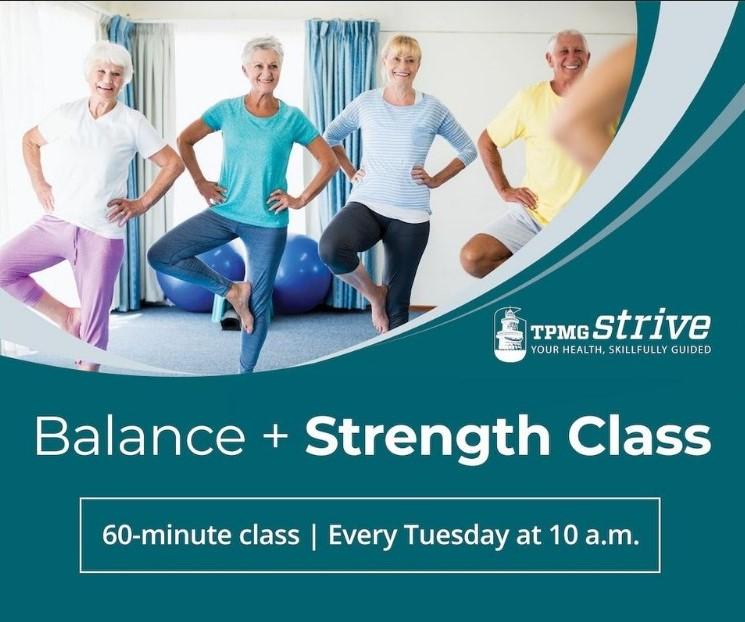 TPMG Strive Fitness & Sports Performance has designed the Balance + Strength Class to improve balance and enhance strength. These 60-minute classes are held Tuesdays at 10:00 a.m. For details on pricing or to register, please call (757) 345-2512.