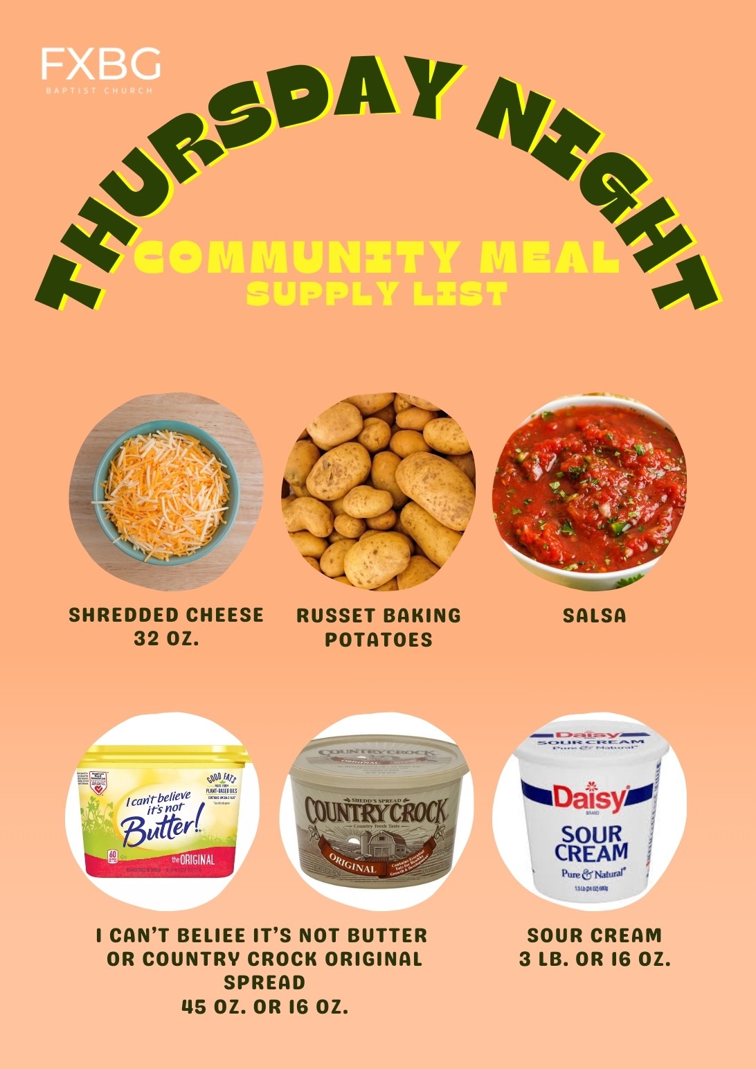 Thursday Night Dinner Supply Needs