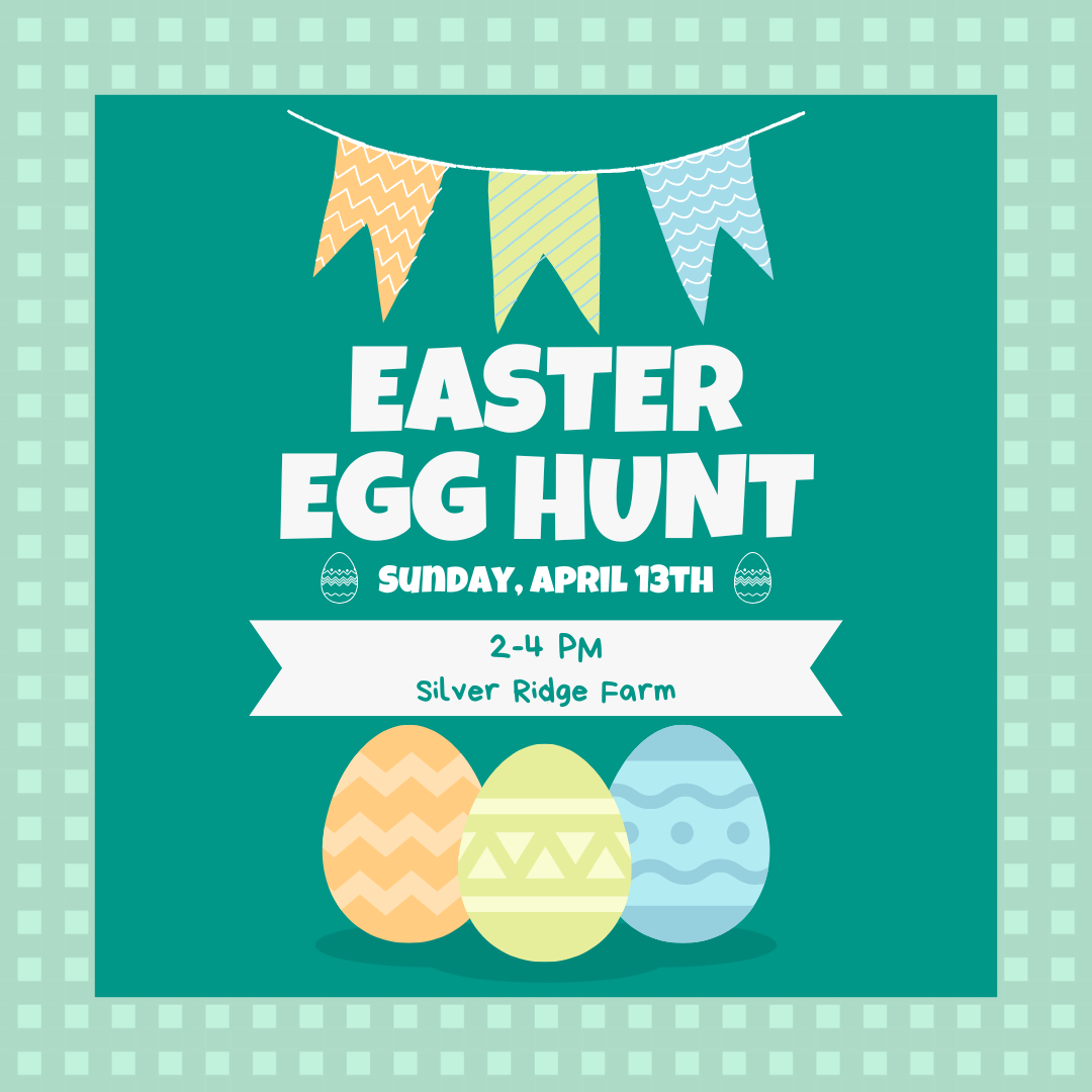 Join us for a joyful Easter Egg Hunt at Silver Ridge Farm on Saturday, April 13th, at 2:00 PM! Bring your baskets and your brightest smiles as we celebrate the season with fun, laughter, and plenty of surprises. There will be treats, games, and memories to treasure. We can't wait to see you there! Email Stephanie with questions.