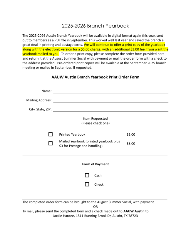 Contact: Ann Gibbs agibbs5200@gmail.com, 512.250.1203