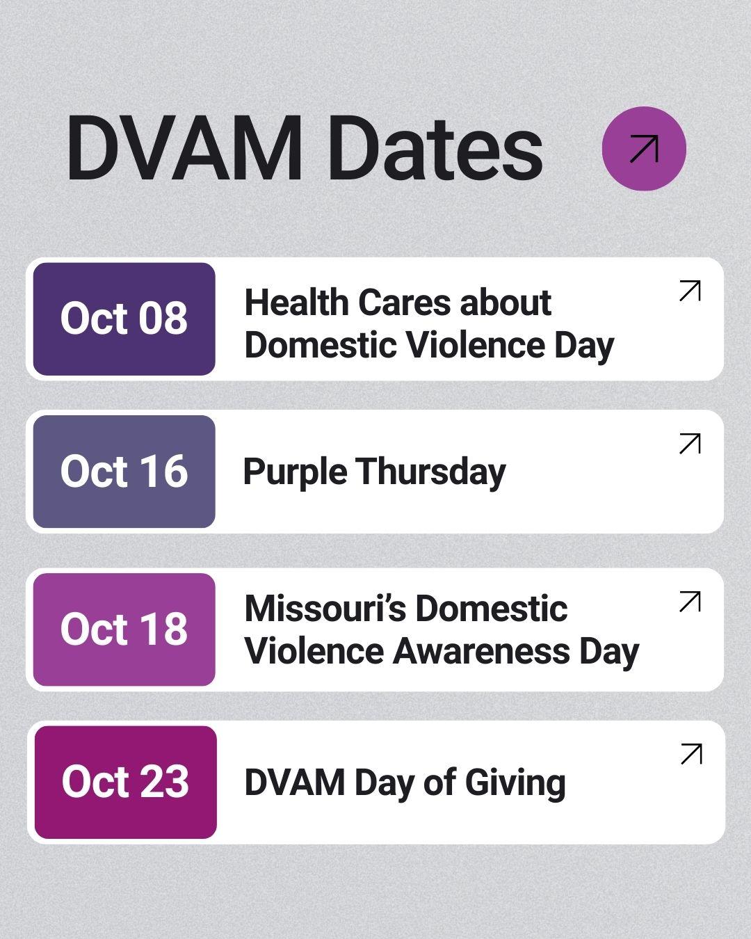 Join Missouri domestic violence agencies across the state in lighting the state purple for Purple Thursday on October 16. Connect with your local city governments, police and fire departments, community partners, and businesses to encourage them to change their outdoor lighting to purple lighting.