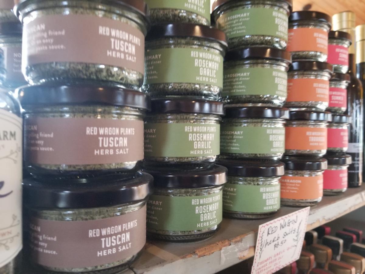 Seen around stores in various corners of the state are the expanding line of packaged herbs grown by Red