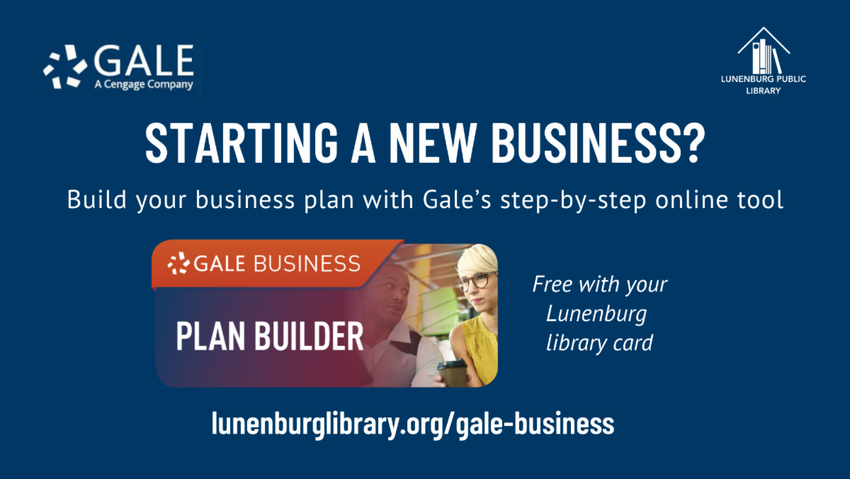 Create a strong business plan with Gale Business: Plan Builder—a free, step-by-step online tool that's free with your Lunenburg Library card.