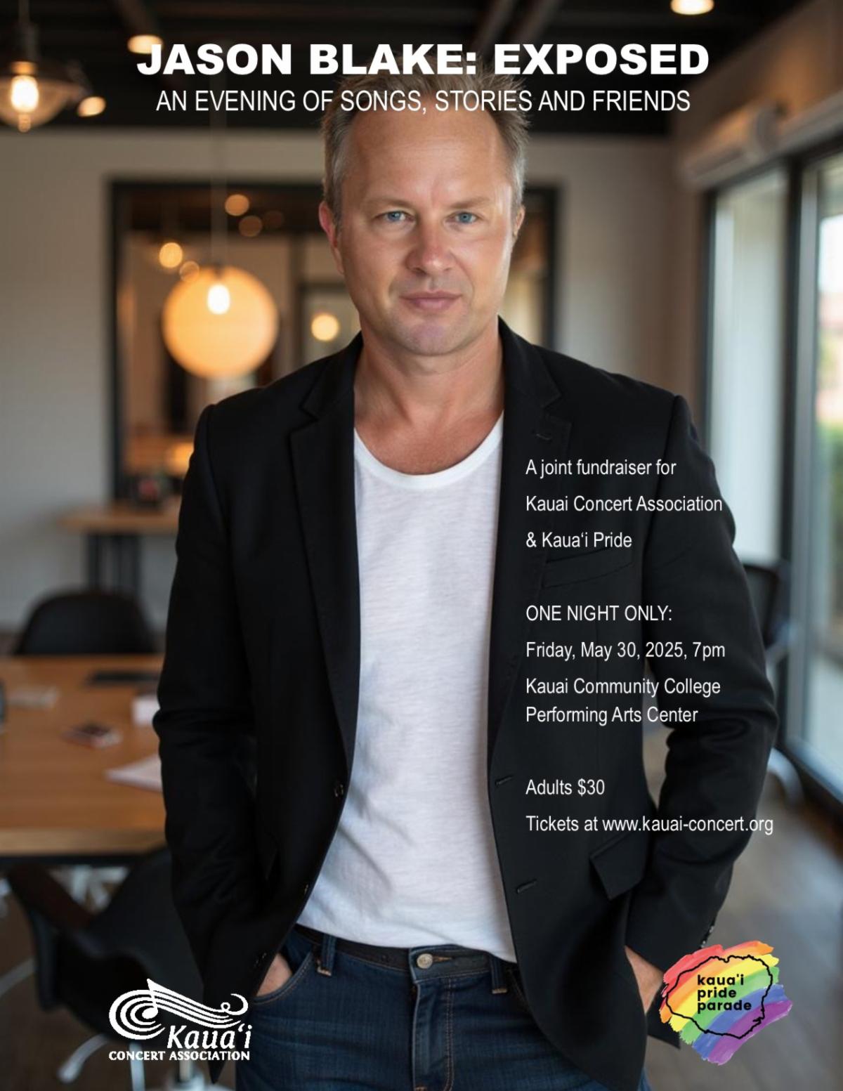 Join Kauai’s own Jason Blake in an evening of songs, stories and friends as we prepare for Pride month.