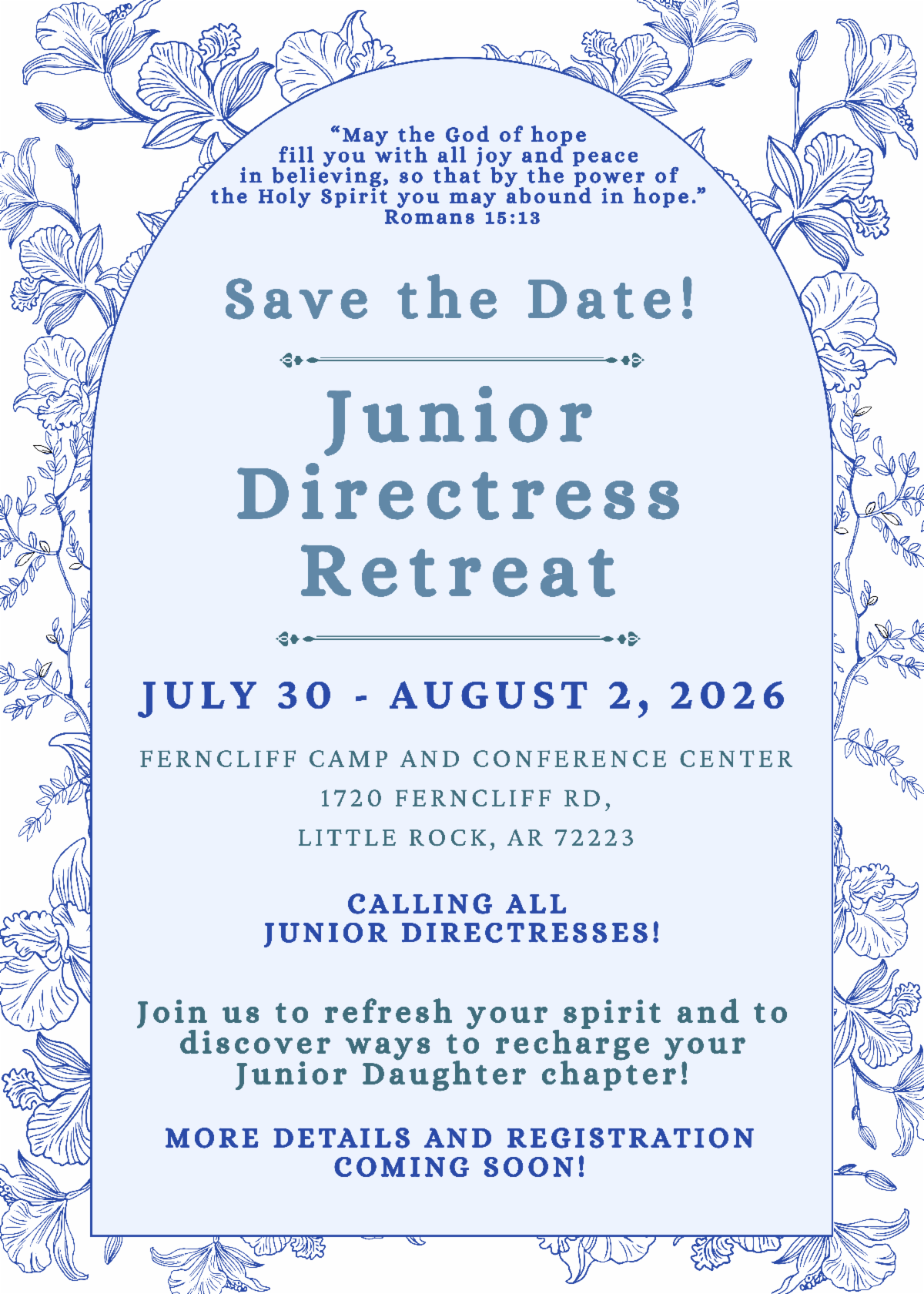 Also, please take a few minutes to complete the survey below. This Junior Directress Survey will help us assess the current state of the Junior Daughter ministry as well as plan for the future. The survey section below has further details.