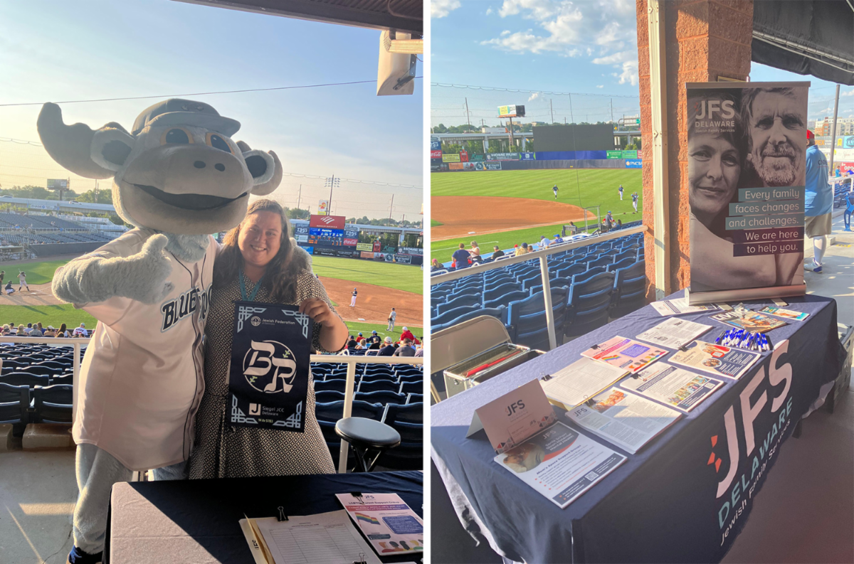 Rabbi Beals from Congregation Beth Shalom opened the night with the national anthem of Israel. JFS had a table on the concourse, as did the JCC, the Jewish Federation of Delaware, and PJ Library at Delaware and Brandywine Valley.