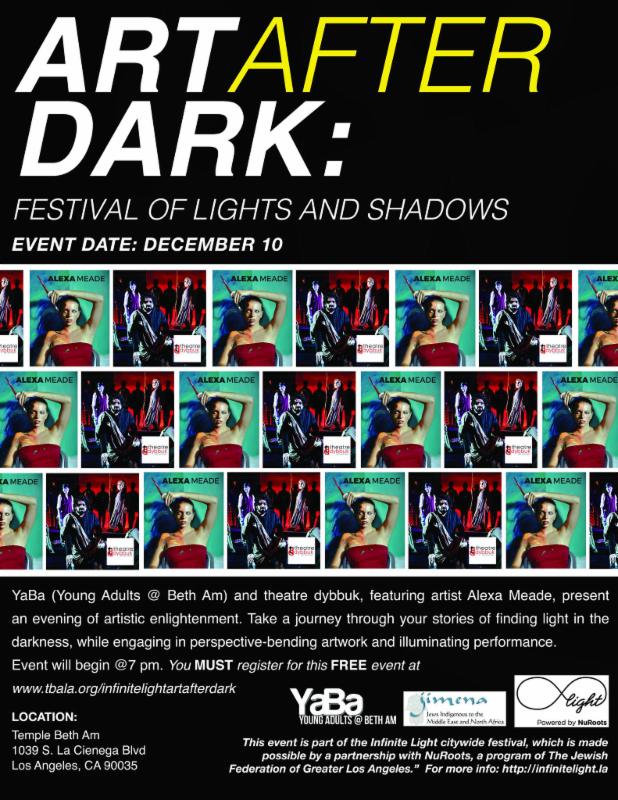 YaBa (Young Adults @ Beth Am) and theatre dybbuk, featuring artist Alexa Meade, present an evening of artistic enlightenment. Take a journey through your stories of finding light in the darkness, while engaging with perspective-bending artwork and illuminating performance.