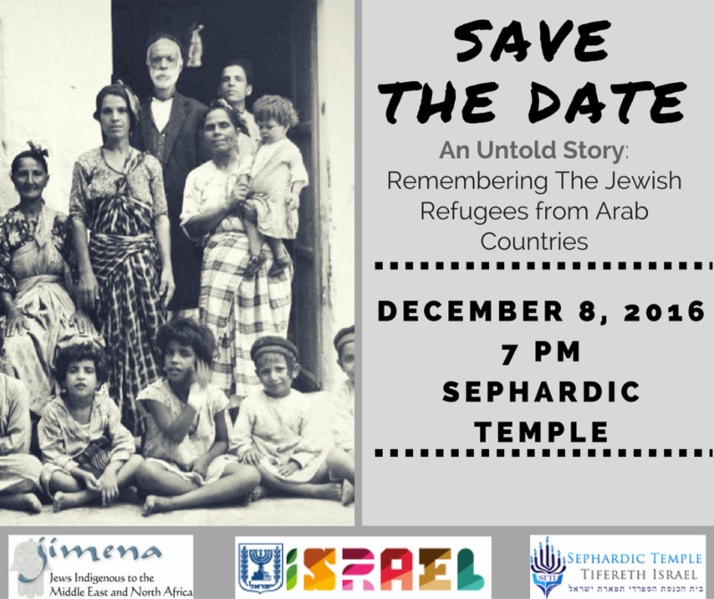 Join JIMENA LA, Sephardic Temple Tifereth Israel, and the Consulate General of Israel LA for this amazing event! An art exhibit and remarks from eyewitness refugees will commemorate the Jewish Refugees from Arab Countries and Sam Grundwerg, Consul General of Israel in Los Angeles will share remarks on the importance of this commemoration.