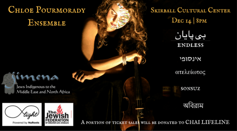 As part of the Jewish Federation of LA's Infinite Light citywide Hanukkah festival, JIMENA and the Skirball Cultural Center are excited to invite you to an evening of Mizrahi and Sephardic culture featuring Chloe Pourmorady and her ensemble.