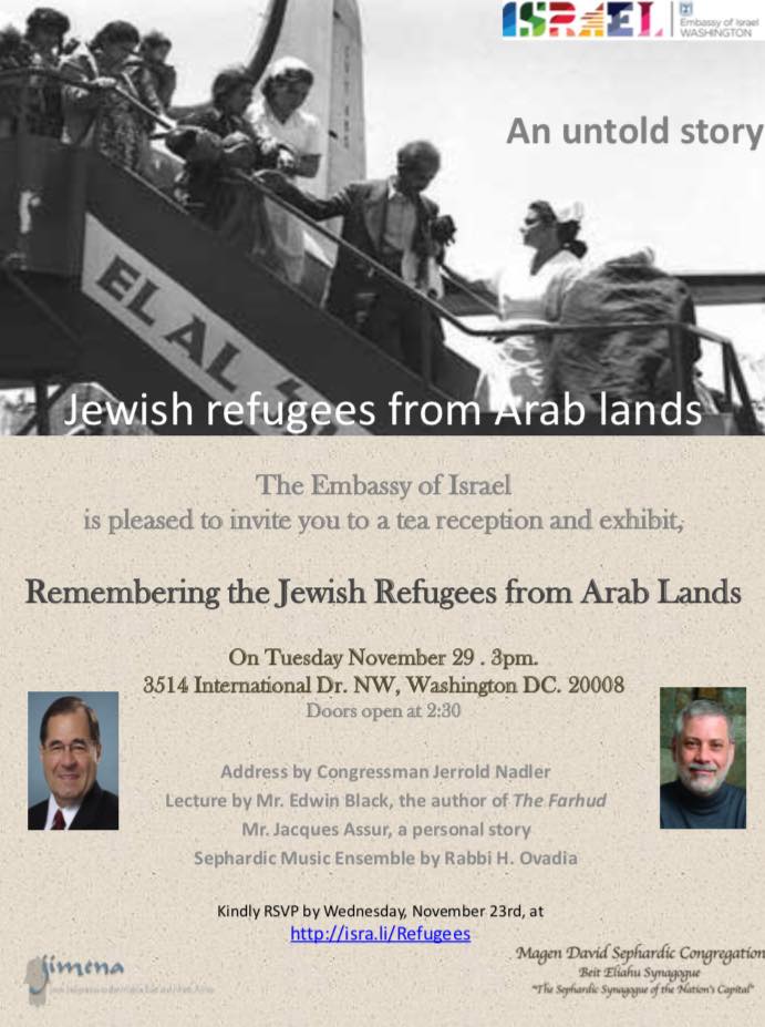 onored guest, Congressman Jerrold Nadler (D-NY 10th District) who recently introduced the Jewish Refugees from Arab Countries and Iran Act. Following his remarks guests will hear from Mr. Edwin Black, the author of