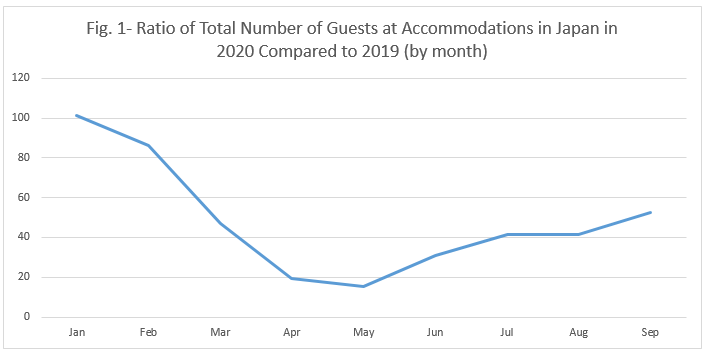 Through the various public and private initiatives and campaigns, Japan has succeeded in increasing domestic travel. According to information from Japan’s Ministry of Land, Infrastructure, and Transport, and Tourism, and as assembled below in Figure 1, domestic travelers staying at tourist accommodations increased to 52% of 2019 figures in September.(22) In comparison, May had the year’s lowest figures at roughly 15% year-on-year of guests staying in hotels and other lodgings.
