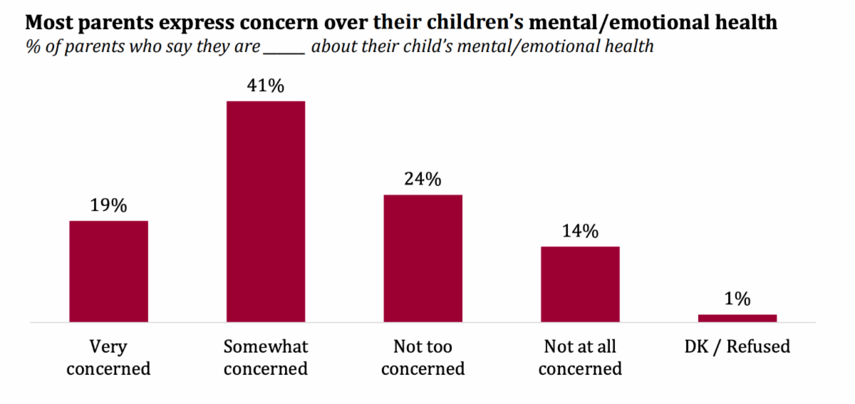 A majority of parents are either very concerned (19%) or somewhat concerned (41%) about their child’s mental and emotional health. Since October, more parents say that this year has had a negative impact on their child's mental/ emotional health and their ability to develop friendships. While 42% of parents prioritize their child’s mental/emotional health and academics equally, a significantly higher percentage of parents (34%) prioritize their child’s mental/emotional health over academics (19%).