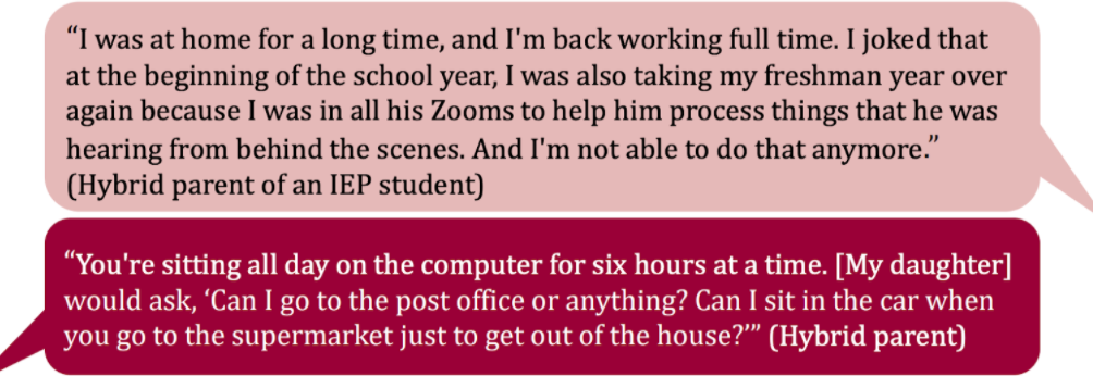 - Hybrid learning continues to be seen by parents as the worst of both worlds.