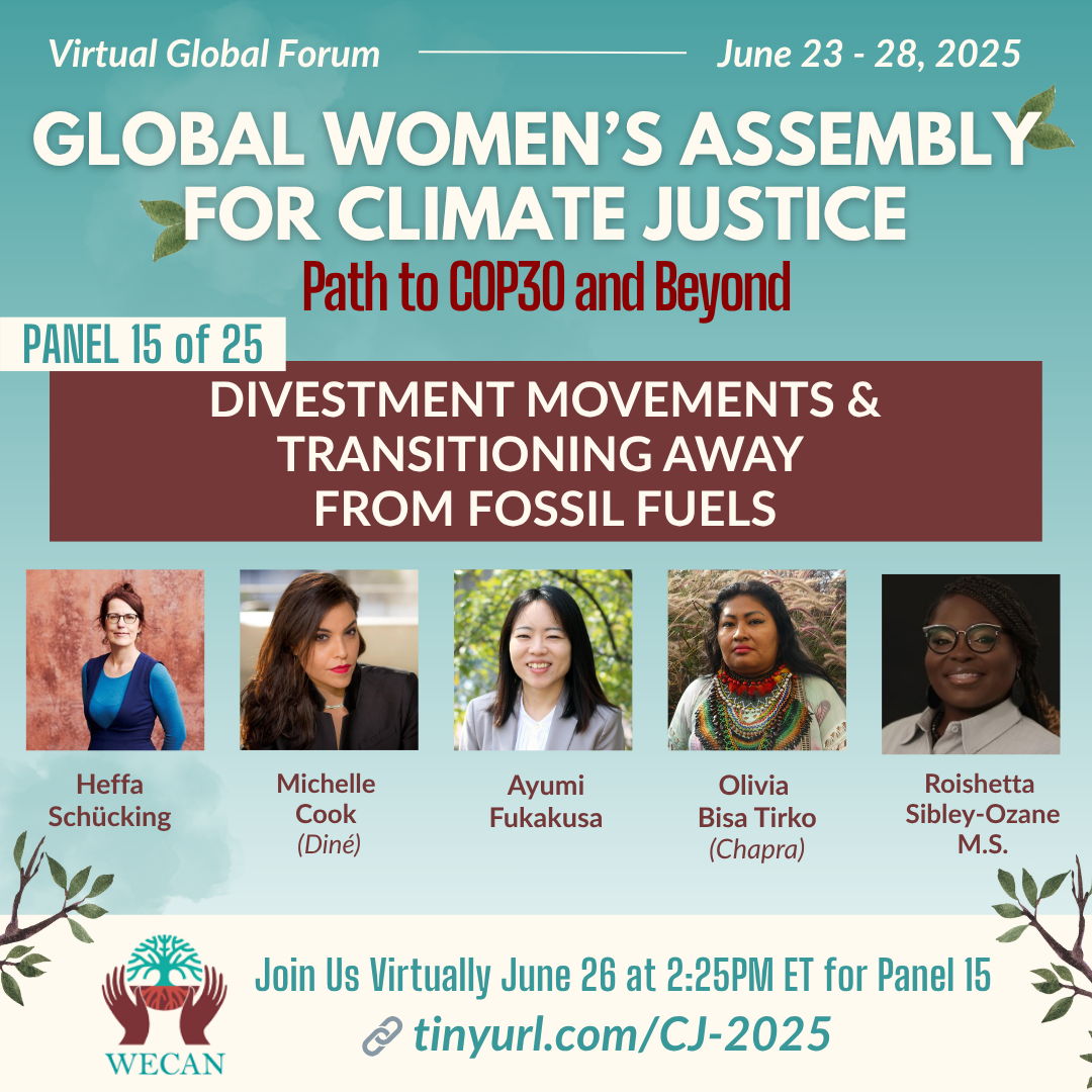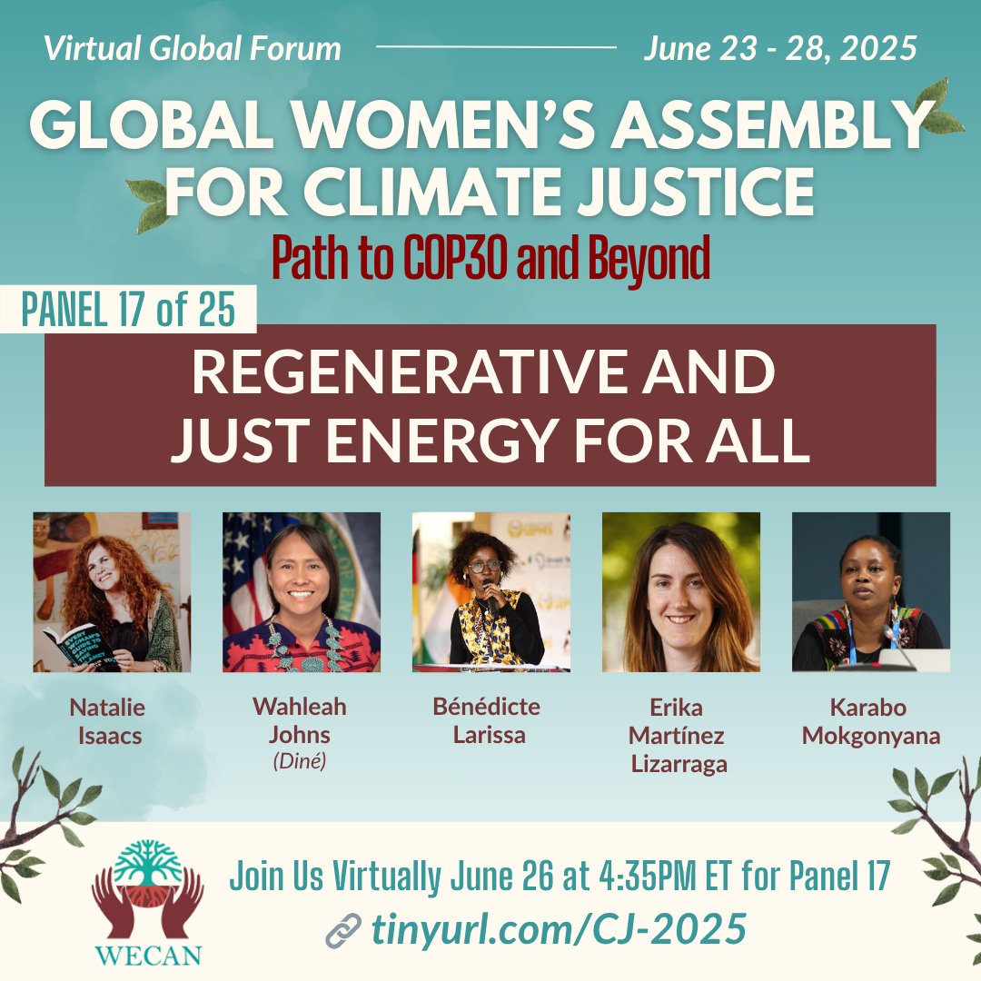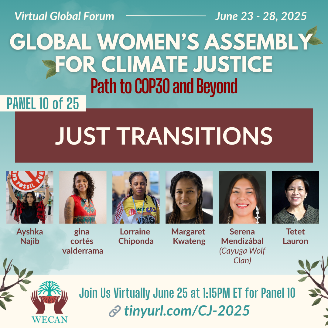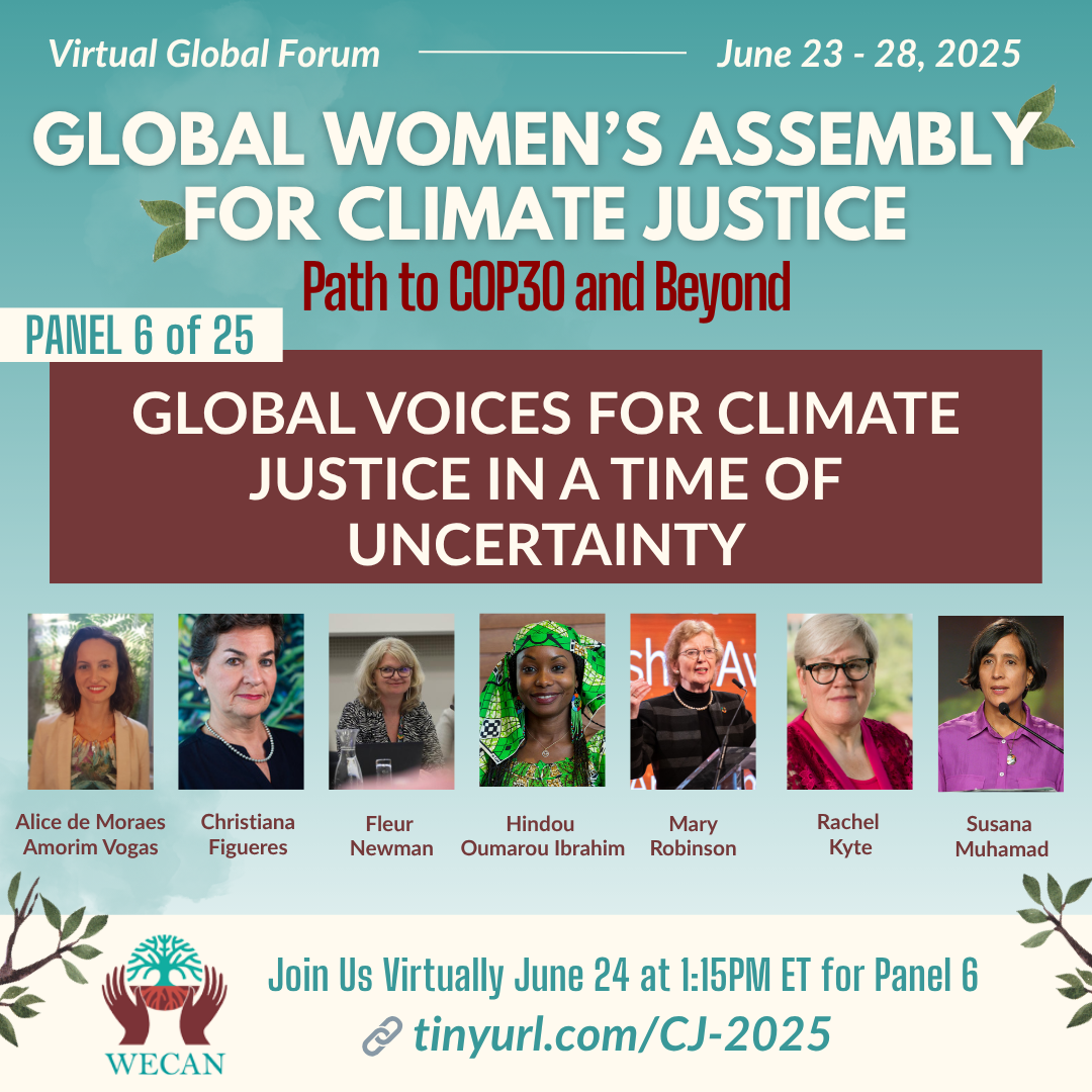 We are soon approaching WECAN's global virtual convening: the Global Women’s Assembly for Climate Justice: Path to COP30 and Beyond!