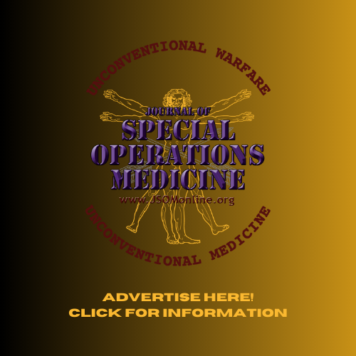 This disclaimer pertains to any publication (aka, "publications") written or electronic set forth by Breakaway Media, LLC (BAM) and includes, but is not limited to: The Journal of Special Operations Medicine (JSOM), social media posts to Facebook, Twitter, Instagram, LinkedIn, the JSOM eNewsletter, the JSOM website, and any promotional materials published by BAM. The views and opinions expressed in these publications are those of the authors, contributors, and sponsors of the JSOM and BAM, and do not necessarily reflect those of the JSOM, the JSOM Editorial Board ("the editorial board"), BAM, or its affiliates. Neither the JSOM, the editorial board, BAM, nor its affiliates hold themselves responsible for statements or products discussed in any BAM publications. Unless so stated, material in BAM publications does not reflect endorsement, official attitude, or position of the JSOM, the editorial board, BAM, or affiliates. Products advertised have not been tested by the JSOM, the editorial board, BAM, or its affiliates, and, as such, cannot be held liable for any injury or death caused by the use or misuse of the products contained herein. Neither BAM, the editorial board, nor its affiliates, make any warranty, representation, endorsement, or guarantee of products advertised, discussed, tweeted, retweeted, or shared any publication, to include the assumption of any liability whatsoever arising out of the application, use, or misuse of any product. As a medical publication, we are committed to sharing new technology and products we feel may be of interest to our readers, and encourage all readers and users of said products to use with caution and under proper authorization and professional guidance.