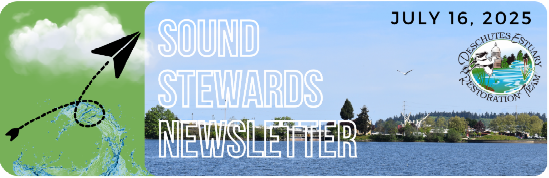 The continuation of the CEDE series is supported by donors like you! Your support is vital for continuing to offer free public programs to engage our community in stewarding the Deschutes. | | | | Sea Stroll: Historic Shoreline Tours | | The Sea Stroll Tours have been a hit! The Estuarium has now sold out tickets for our last planned Sea Stroll walking tour in August. It’s been a joy to partner with the Puget Sound Estuarium on this series, and we’d love to continue offering it next year. The walking tour explores changes to the Deschutes Estuary through time– including the filling in of the Moxlie Slough, the development of the Port Peninsula, and more recent clean-up efforts and expected changes with the removal of the 5th Ave Dam and restoration of the Deschutes Estuary. Interested in booking a private tour for your group? | | Deschutes Estuary Restoration Project | | This spring, the Legislature shifted the funding for the Deschutes Estuary Restoration Project (DERP) to the Department of Ecology (Ecology) from the Department of Enterprise Services (DES). Representative Lisa Parshley has been working with an interagency team that includes Ecology, DES, and the Governor's office, as well as the City of Olympia and the Squaxin Tribe, to ensure forward progress on DERP while putting together a new project management structure. DERT has met with Representative Parshley and will be meeting with Ecology’s project team to ensure continued community engagement and communication as the new management and project plan develop. We are excited to share with you updates about the project in next month’s newsletter– so please stay tuned! | | |