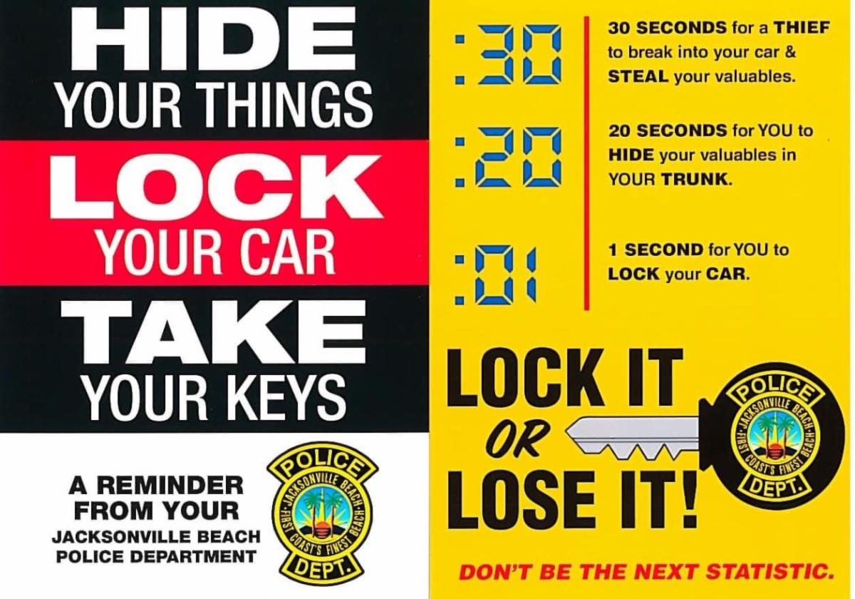 Remember to hide your things, lock your car, and take your keys. | | | |