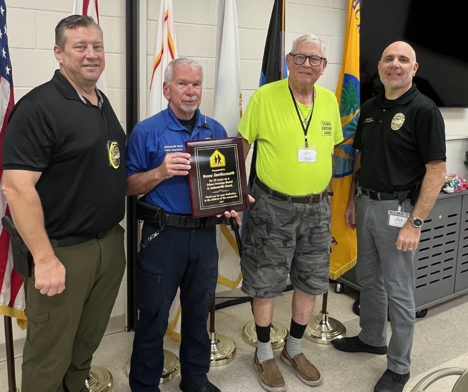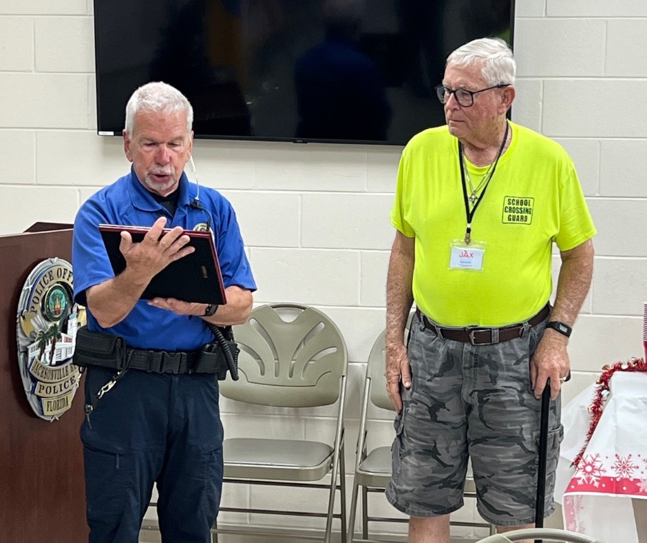 At the 2024 Crossing Guard luncheon held last week, Benny Shettlesworth, known to many as Mr. Bennny from Seabreeze Elementary, was recognized for TWENTY-FIVE years of service with the Jacksonville Beach Police Department as a School Crossing Guard!