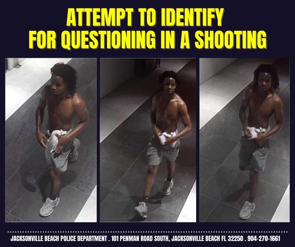 On May 27, 2024, there was a shooting in the Jacksonville Beach Central Business District. The Police Department is asking for your assistance in helping identify this individual who is a person of interest.