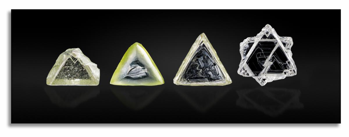 Then there’s the feature that examines the unusual formation of diamond contact twins, otherwise known as “macles.” These thick triangular rough crystals have always fascinated gemologists for their unusual shape as well as wonderful surface markings. This feature goes even further to study not only the outer appearance, but also in how these crystals grow – examining the interior structure of macles.