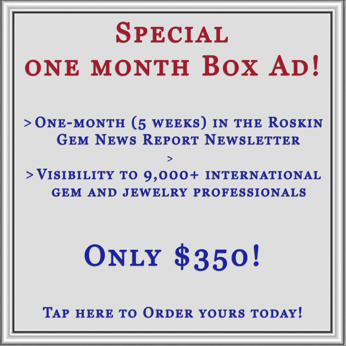 One-month (5 weeks) in the Roskin Gem News Report Newsletter