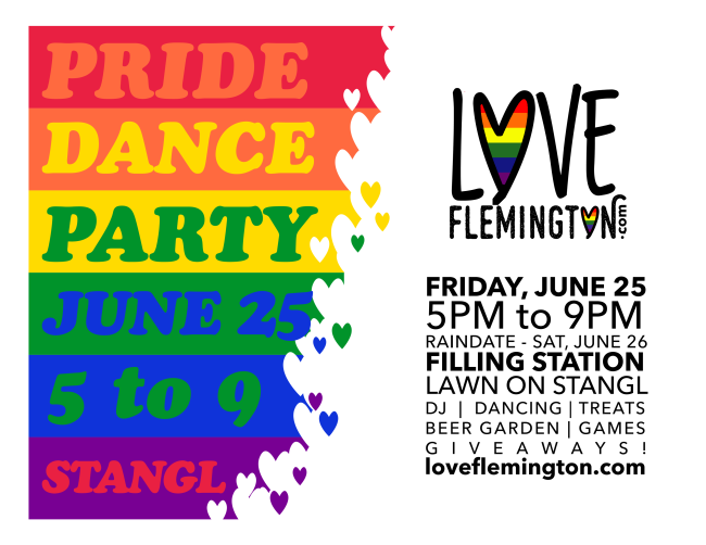 PRIDE Celebration and Dance Party at the Filling Station Tent, Fri June 25th, 5 - 9pm. The Filling Station tent is located Stangl Road near N'Joy Yourself and Lone Eagle. Join us for a fun celebration, all are welcome. Pick up dinner from a local restaurant! Beer, wine, and specialty cocktails will be served. 21+ must show ID to purchase drink tickets. Bring your own lawn chair. Free admission.